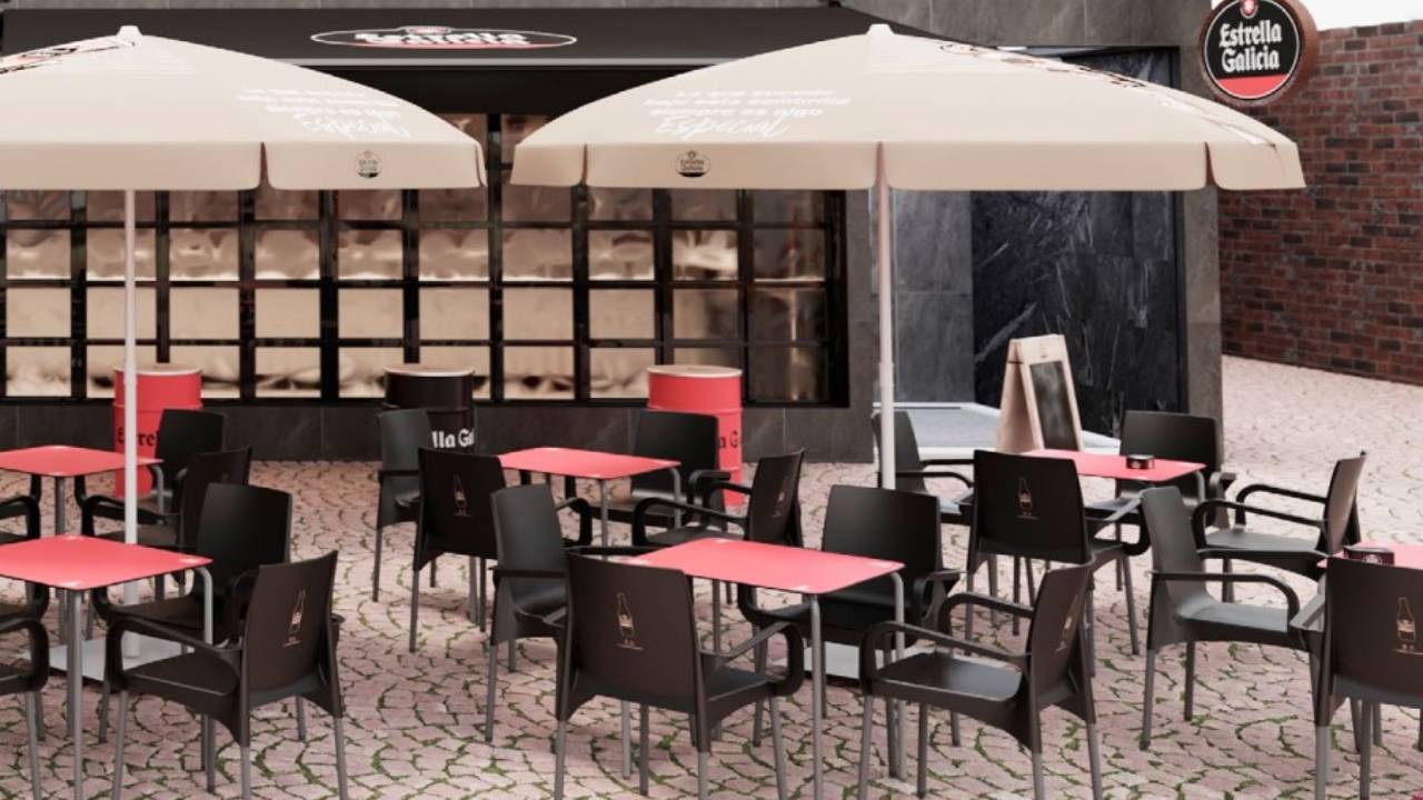 Disponemos para todos los clientes que lo deseen todo el mobiliario que necesita para su terraza: sillas, mesas y sombrillas de Estrella Galicia. Se aplican condiciones.